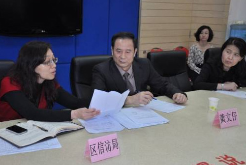 圖:黃董與海珠區(qū)信訪局負(fù)責(zé)人討論來訪群眾反映問題