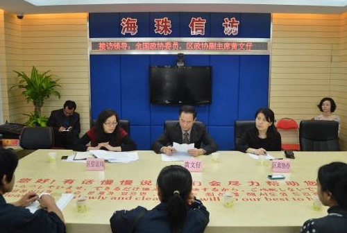 圖:黃董與海珠區(qū)信訪局、海珠區(qū)政協(xié)辦負(fù)責(zé)人共同接待來訪群眾