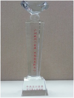 圖說:汶川縣委縣政府贈與星河灣集團慈善獎杯