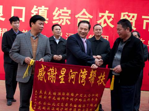 2013年12月25日上午,從化良口鎮人民政府代表從黃董手中接過“金鑰匙”,這象征著由星河灣集團投入5100萬元捐建的綜合農貿市場,順利移交給從化市良口鎮人民政府。當天,廣州市政協主席蘇志佳,廣州市委副書記、市農村扶貧開發工作領導小組組長方旋,廣州市農業局黨委副書記王健舜,從化市委書記黃河鴻、市長蔡澍、市委副書記王建紅、副市長孫石康等參加了移交儀式。