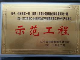 在遼寧省建筑施工安全生產(chǎn)標(biāo)準(zhǔn)化的年度評(píng)選中,遼寧省住房和城鄉(xiāng)建設(shè)廳授予沈陽(yáng)星河灣“遼寧省建筑施工安全生產(chǎn)標(biāo)準(zhǔn)化示范工程”獎(jiǎng)牌。