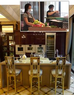 工作人員在分類(lèi)并清潔餐廳擺件