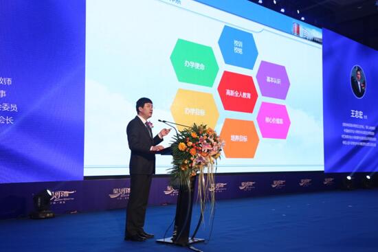 西安高新國(guó)際學(xué)校校長(zhǎng)王志宏做“高新全人教育,走進(jìn)兒童世界,培養(yǎng)世界兒童”主題演講